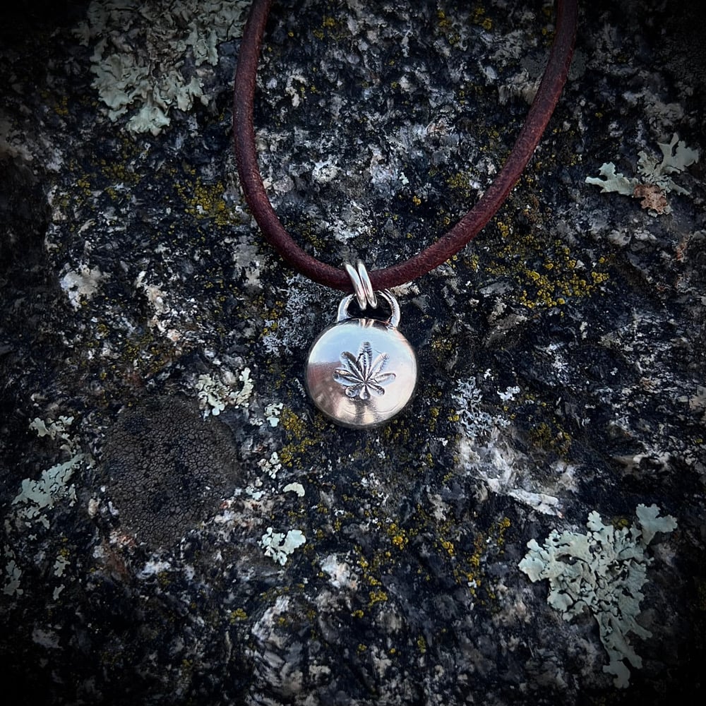 Cannabis Leaf dome pendant on adjustable 3mm Leather cord.